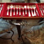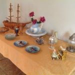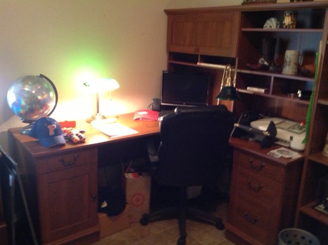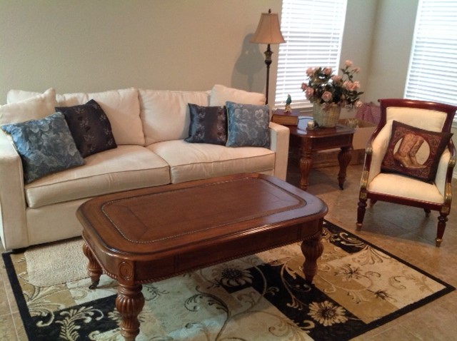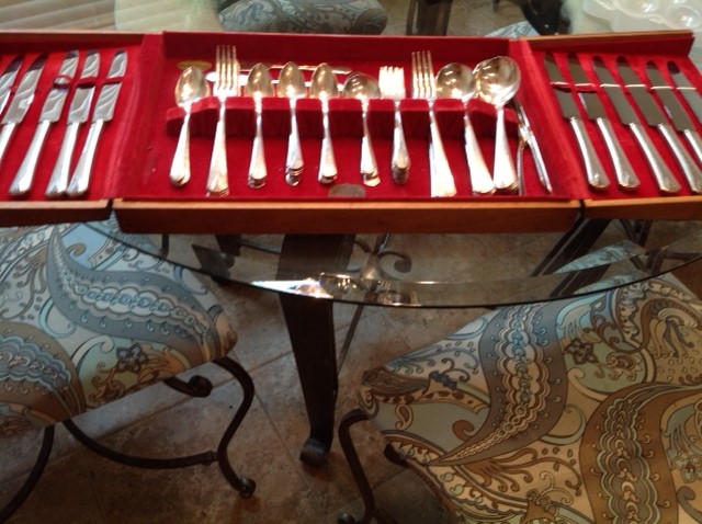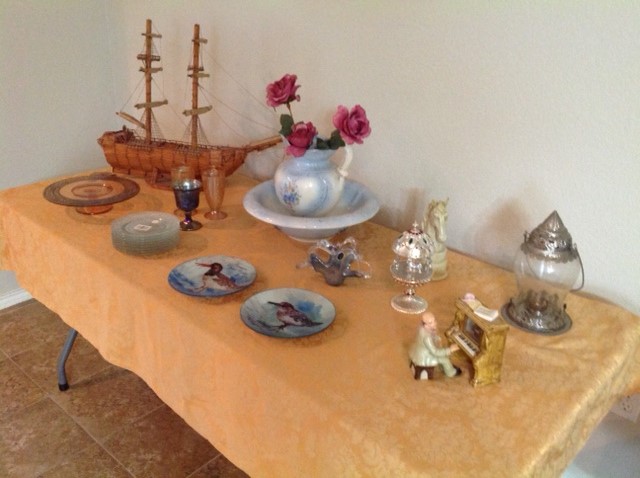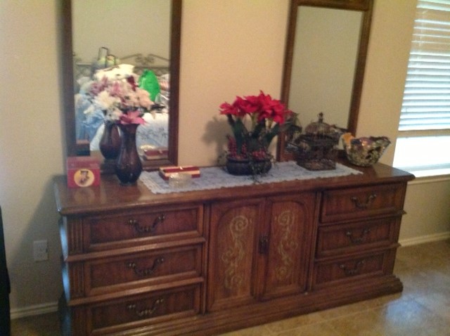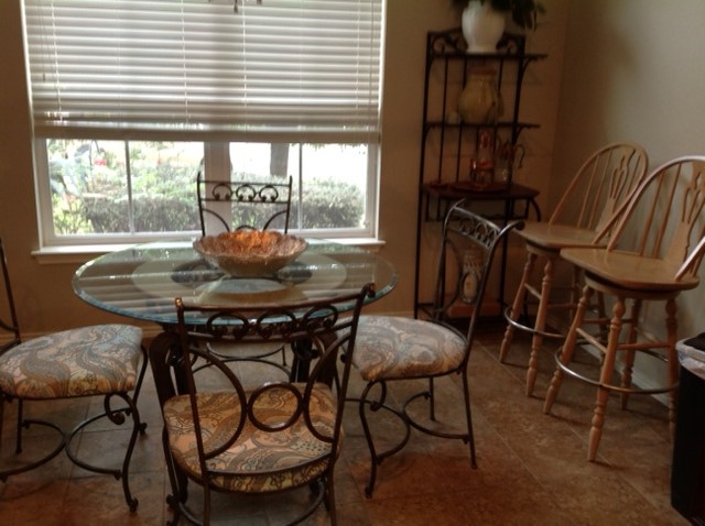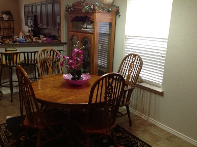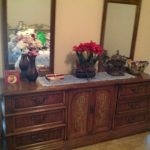Sleeper sofa, oak table and chairs, china hutch, glass top table